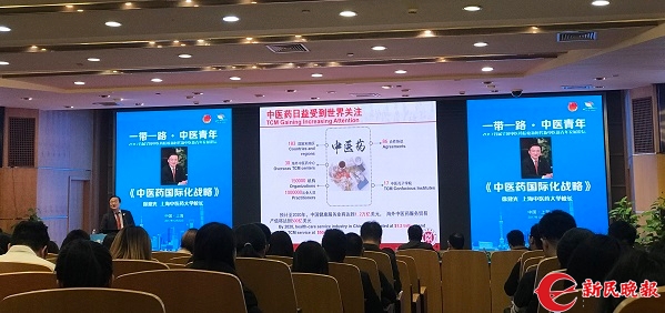 图说:beat365官方网站校长徐建光作有关“中医药海外发展”的主题报告