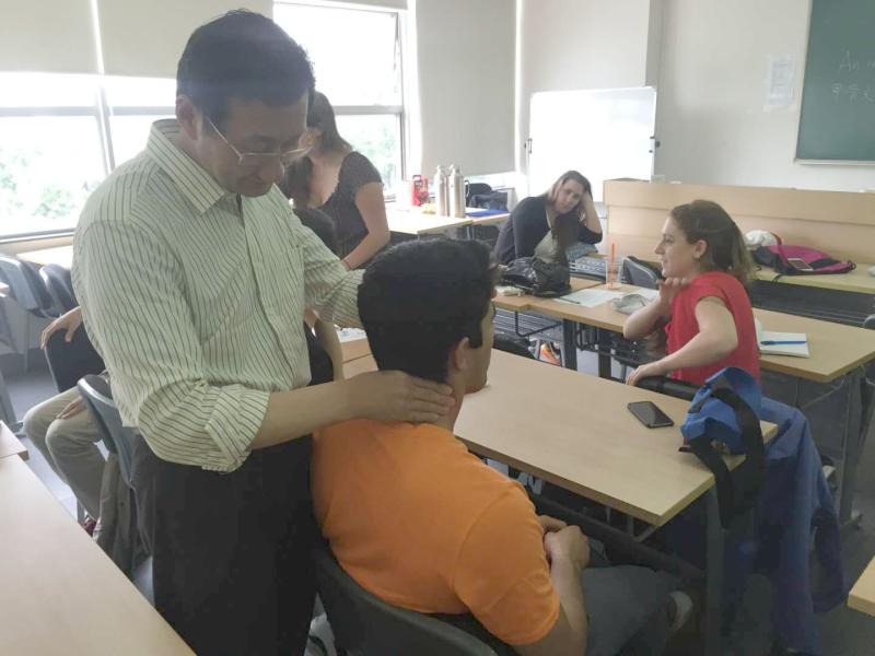 40多岁的塞尔维亚人沙萨就是其一。沙萨酷爱中国武术,曾是欧洲太极拳冠军,在其首都贝尔格莱德设有“武协”。习武之人,跌打损伤难免,如何也用中国方法解决?一年暑期学校,他慕名来到中医大学习推拿“功夫”。短短一周课程后,沙萨便深感兴趣,有意到此长期留学读研。