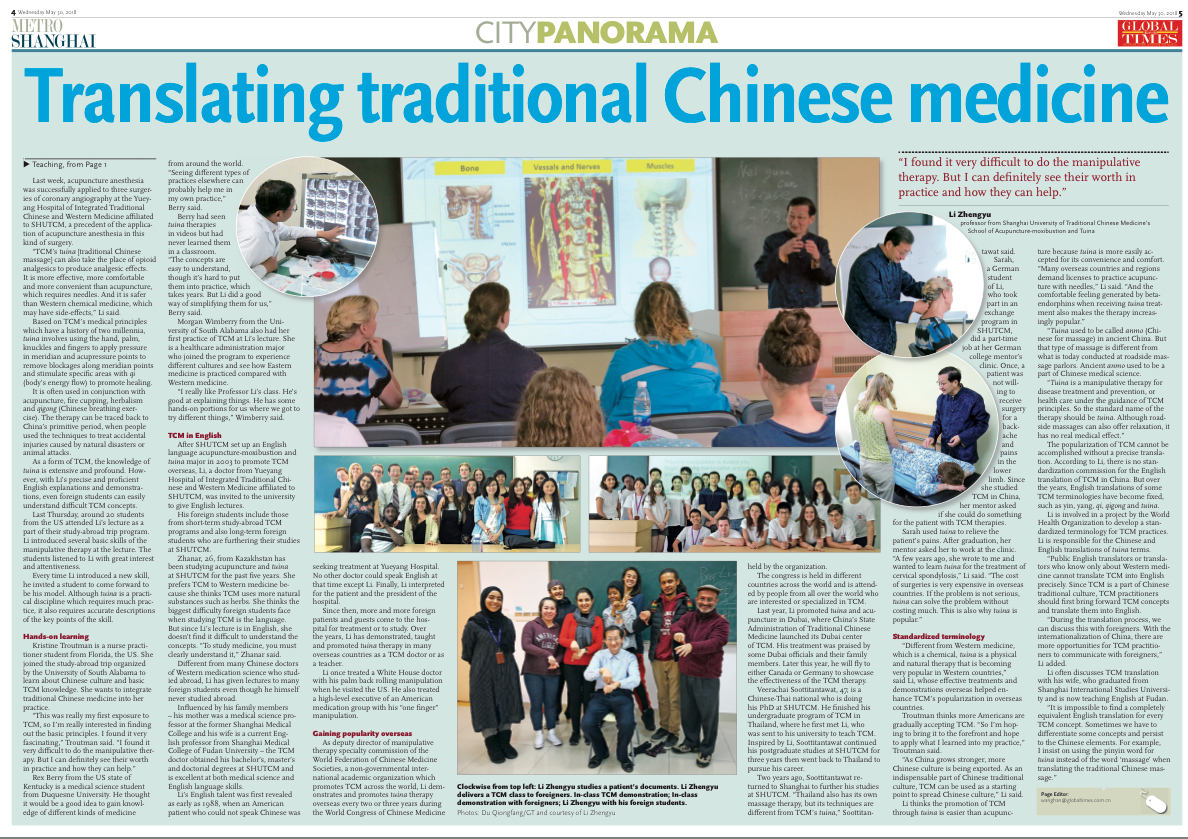Global Times: TCM professor at Shanghai University of Traditional Chinese Medicine gaining popularity among foreign students
