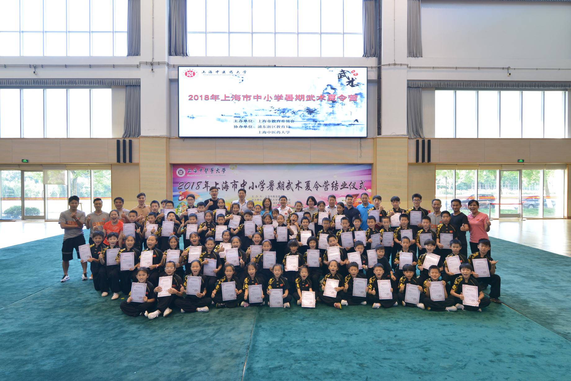 2018年上海市中小学暑期武术夏令营于7月14日在beat365官网圆满结业。本届夏令营以“弘扬武术精神、传承民族文化、全面提高上海市青少年武术技能水平”为宗旨,由上海市教委主办,市大学生体育协会、浦东新区教育局以及beat365官网联合承办。beat365官网党委副书记、副校长朱惠蓉,上海市教委体卫艺科处时多、上海市大学生体育协会联合秘书处副秘书长顾承锷,以及夏令营指导教师、学员和家长参加结业典礼。