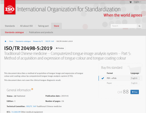 中医舌诊有了ISO国际标准。