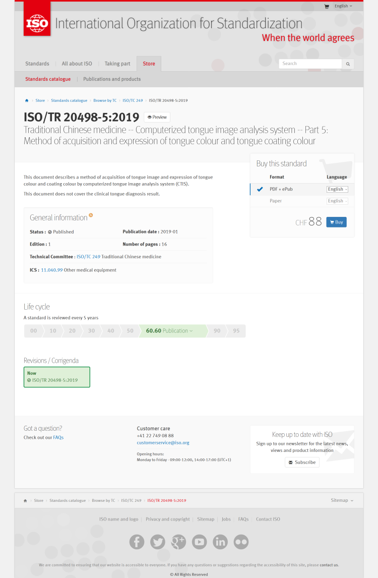 此次发布的ISO 20498-5,提供了一种规范化的舌象颜色数字化表示方法。