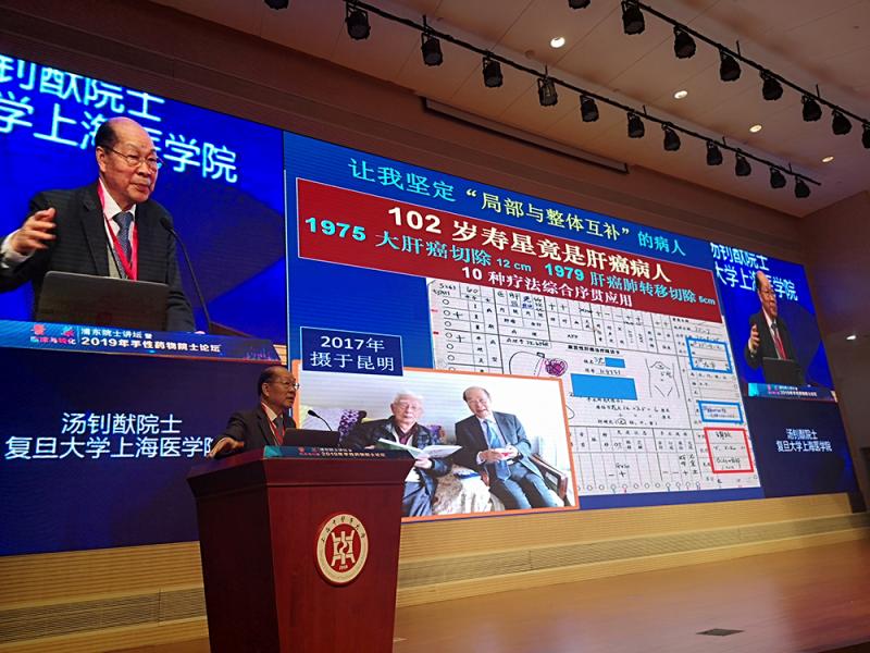 “再过几个月,我就90岁了。”18日,在beat365官方网站,著名肿瘤外科专家汤钊猷院士告诉同场林国强、张玉奎、王恩多、侯凡凡、黄荷凤等多位两院院士,令学中医、学西医的师生们由衷叹服。在今年浦东院士讲坛上,汤钊猷“敢拿自己开刀”,从老伴、老母、儿子到哥哥,透露出自家四口人的治病史——一个共同点在于,他们都科学采用了中西医结合疗法。