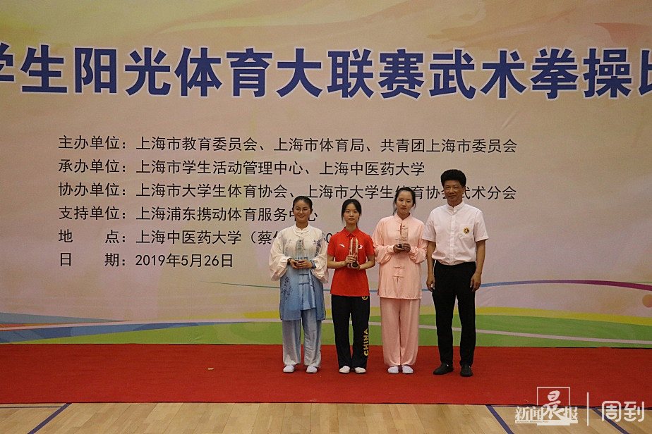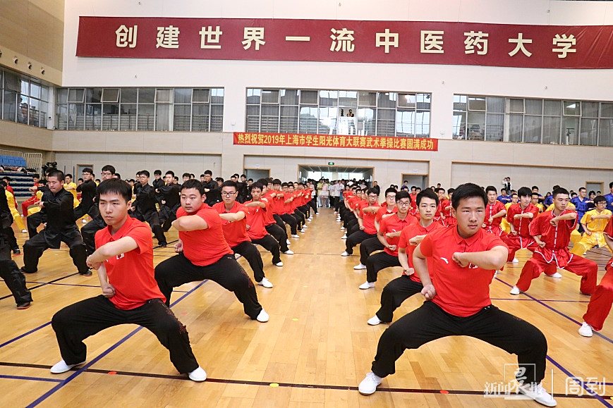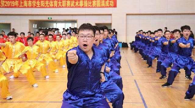 刚刚闭幕的上海市学生阳光体育大联赛武术拳操比赛,来自交大、同济、财大等全市14所高校的500余名申城学子在赛场上一决高下。