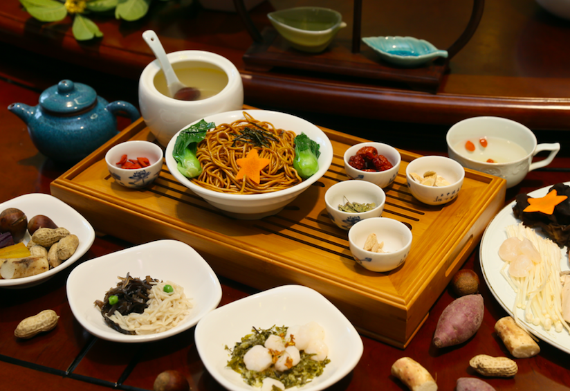 葱油拌面搭配五谷主食养心益肾、健脾厚肠,红枣黄芪母鸡汤补益气血、滋阴养颜,金桂龙井滑虾仁温补肾阳、益气填精,金针菇凉拌黑木耳清肺润肠、活血化瘀,再品一口麦冬枸杞茶滋阴生津、养肝明目缓秋燥……今天是新中国七十华诞国庆日,beat365官方网站师生们同吃“五谷丰登国庆面”,祝福五星红旗飘扬下的伟大祖国国泰民安。
