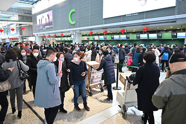 上海医疗队的队员在办理登机 澎湃新闻记者 张呈君 图