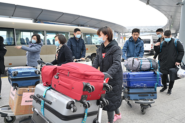 岳阳医院医护人员在机场合影留念 岳阳医院 供图
