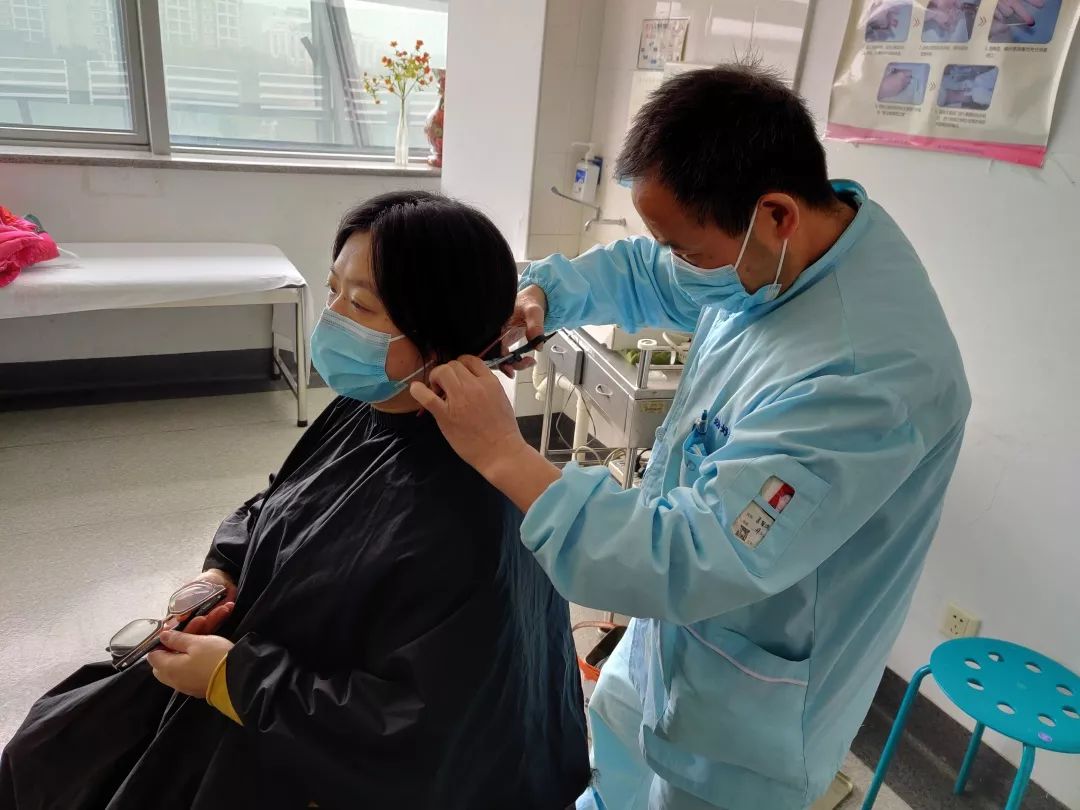 △林凡菊是第三批危重患者救治医疗队的成员,为了方便穿戴防护服,她剪去了留了多年的长发。