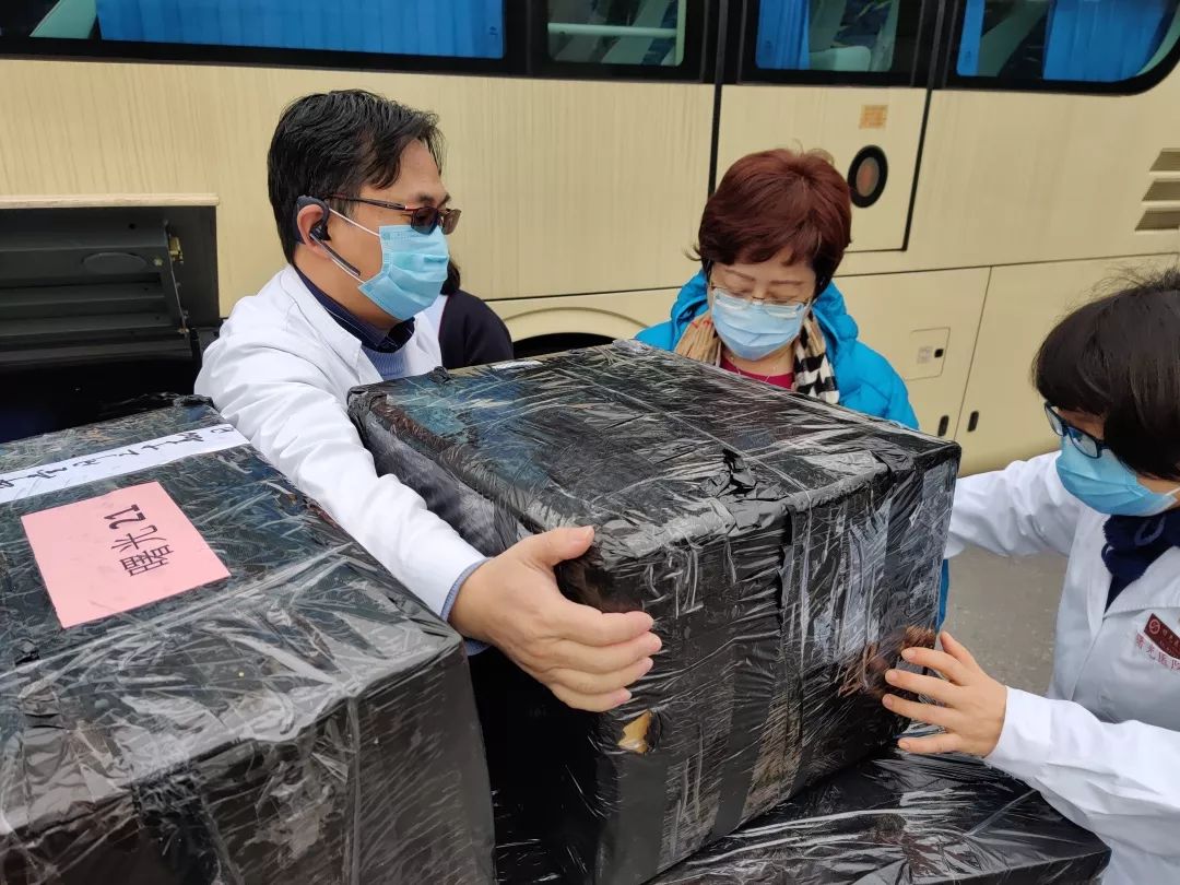 △第一批医疗支援队的队员们收到了来自上海的物资补给