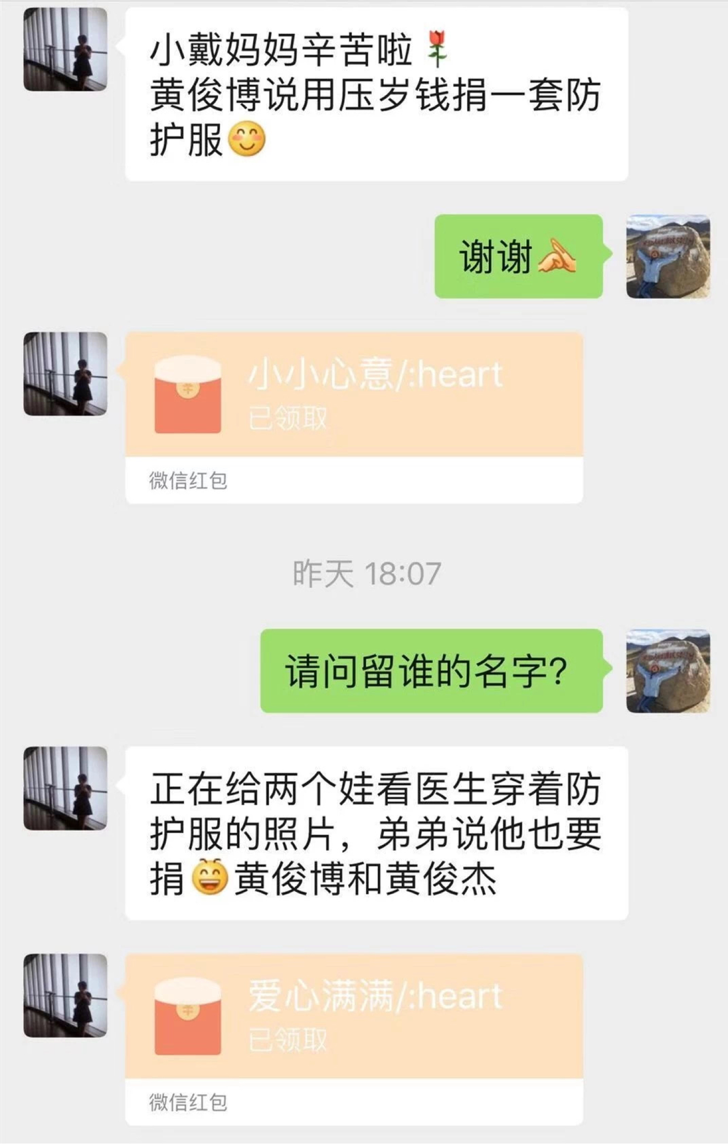 航华东管理局和上海市公安局普陀分局职工子女,火车头国弈俱乐部和晋元附属小学的孩子们向龙华医院赠送了70套紧缺的医用防护服。令人特别感动的是,这87名孩子都是“10后”,他们自发组织此次爱心捐赠活动,用自己的压岁钱为医护人员购买医用防护服。他们的父母们全力支持孩子们的义举,辗转从国外采购到这批医用防护服,并用最快的速度运回国内。