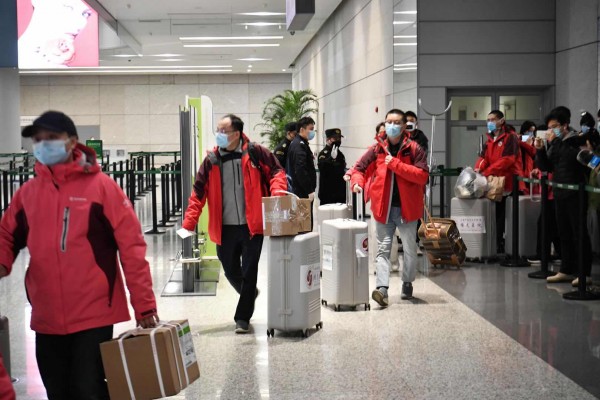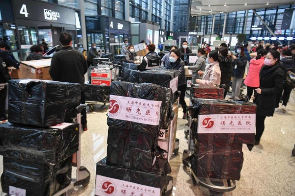 图说:第四批国家中医医疗队(上海)即将乘坐包机前往武汉 来源/新民晚报记者 陈梦泽 摄(下同)
