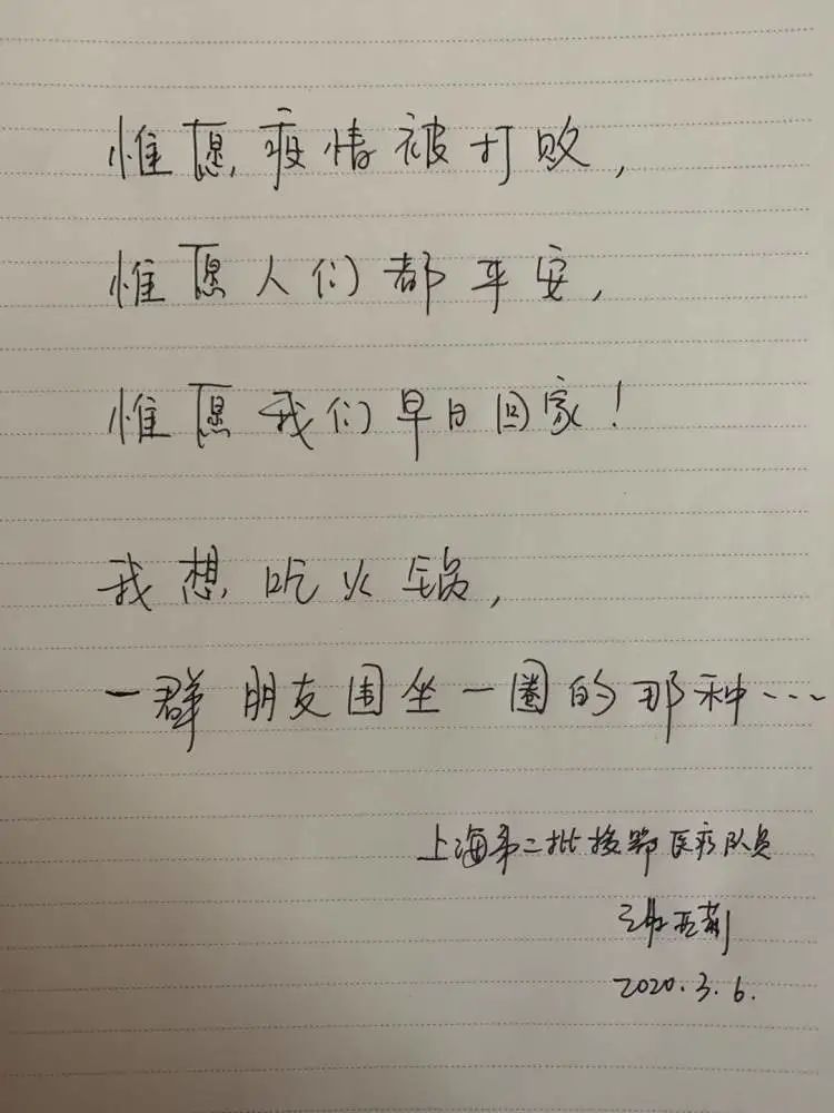 17、惟愿疫情被打败,惟愿人们都平安、惟愿我们早日回家!我想吃火锅,一群朋友围坐一圈的那种……—第二批援鄂医疗队对接武汉三院,第六人民医院护士谢亚莉