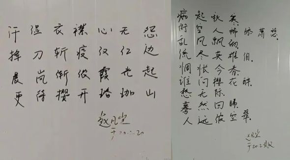 赵凡尘也是手绘墙的创作者之一,他将自己的诗作写在墙上,他说:“这些书画展现的是他们工作的日常,更表达战胜新冠肺炎疫情的决心,希望这面墙不仅为医护人员和患者带去轻松和温暖,也能够把这里的乐观精神传递给武汉之外的人们。”