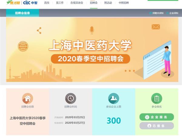 学校在3月25日至27日联合预才网开展空中招聘会,吸引近300家优质企事业单位报名,涉及各级医院、科研单位、医药企业、健康养生和保险企业等多个方面,提供1000余个招聘岗位,需求人数5000多人,覆盖专业全、地域分布广、招聘需求大,皆创历年之最。招聘会共吸引近1000名学生参加,学校学生简历投递份数达2136份。