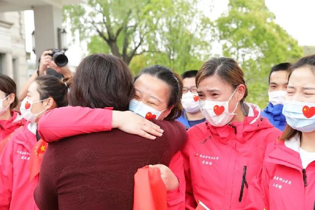 曾经的分隔让拥抱拉近,不尽的牵挂化为喜悦。由beat365官方网站系统派出的122名支援武汉雷神山医院的第四批国家中医医疗队上海队员4月14日结束14天的医学观察期休整,全队收拾行囊启程回家了。