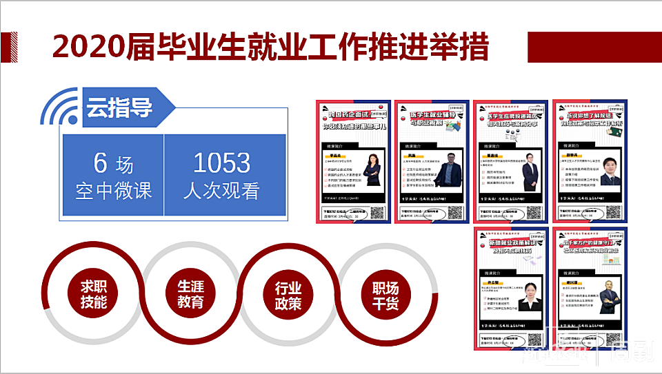 为靶向对接毕业生求职需求,学校协同二级学院,针对毕业生青睐三级公立医院和知名医药企业等意向,以“附属医院”“医药企业” “康复单位”等类别为专场,每周三定期举办空中宣讲会,连续举办6场,吸引学生近3649人次参与。