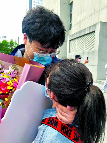 昨天下午,回到岳阳医院时,顾羚耀一眼就看到了人群中的女友。那一刻,两人的手紧紧相拥在了一起。“虽然我们坚守在不同的地方,但是总是感觉在一起作战,感觉特别有意义。”