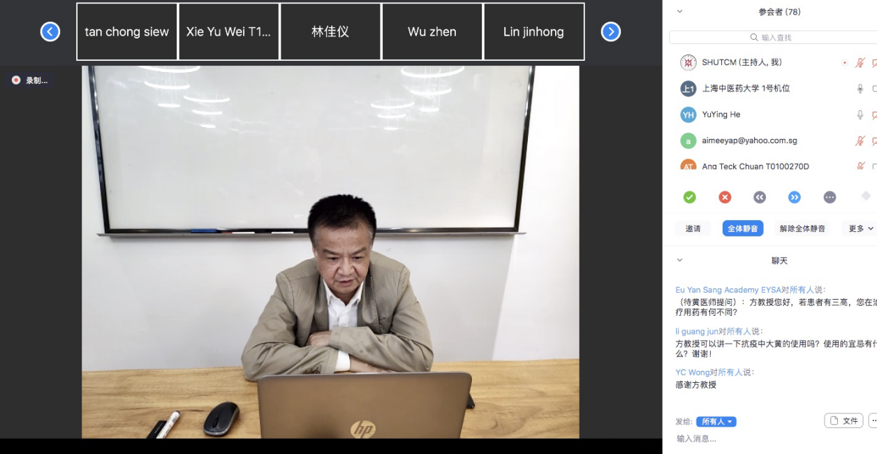 近期,beat365官网国际教育学院应邀与新加坡余仁生学院合作,为新加坡中医师协会开设疫情防治以及疫情期间的慢病护理系列公益讲座。