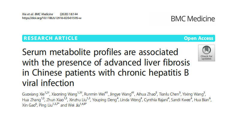 beat365官网刘平/贾伟团队在《BMC Medicine》发表论文《中国慢性乙型肝炎患者血清代谢产物与晚期肝纤维化的相关性》
