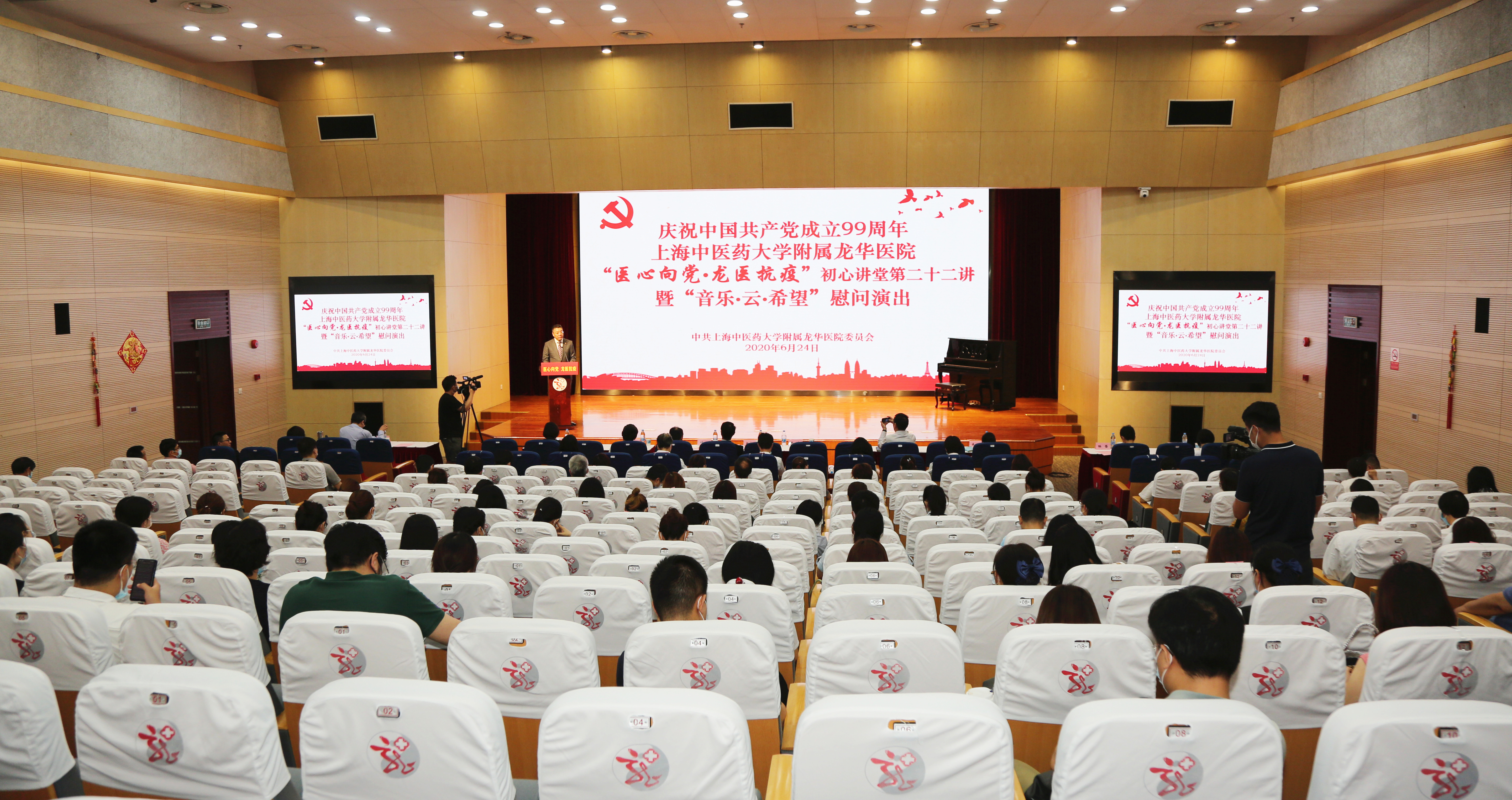 6月24日,为庆祝中国共产党成立99周年,附属龙华医院“医心向党•龙医抗疫”初心讲堂第二十二讲暨“音乐•云•希望”慰问演出在龙华医院远志楼三楼会议室举行。beat365官网副校长杨永清,上海爱乐乐团、上海师范大学人文学院、工商银行上海市徐汇支行、龙华烈士纪念馆等多家党建共建单位领导,龙华医院党政领导班子、职能科室负责人、支部书记及党员代表、民主党派及统战团体代表等近150人参加现场会议。特殊时期,本次大会采用了线上线下相结合的方式,广大党员、学生、职工、党建共建单位成员等3700余人通过网络直播在线听课。