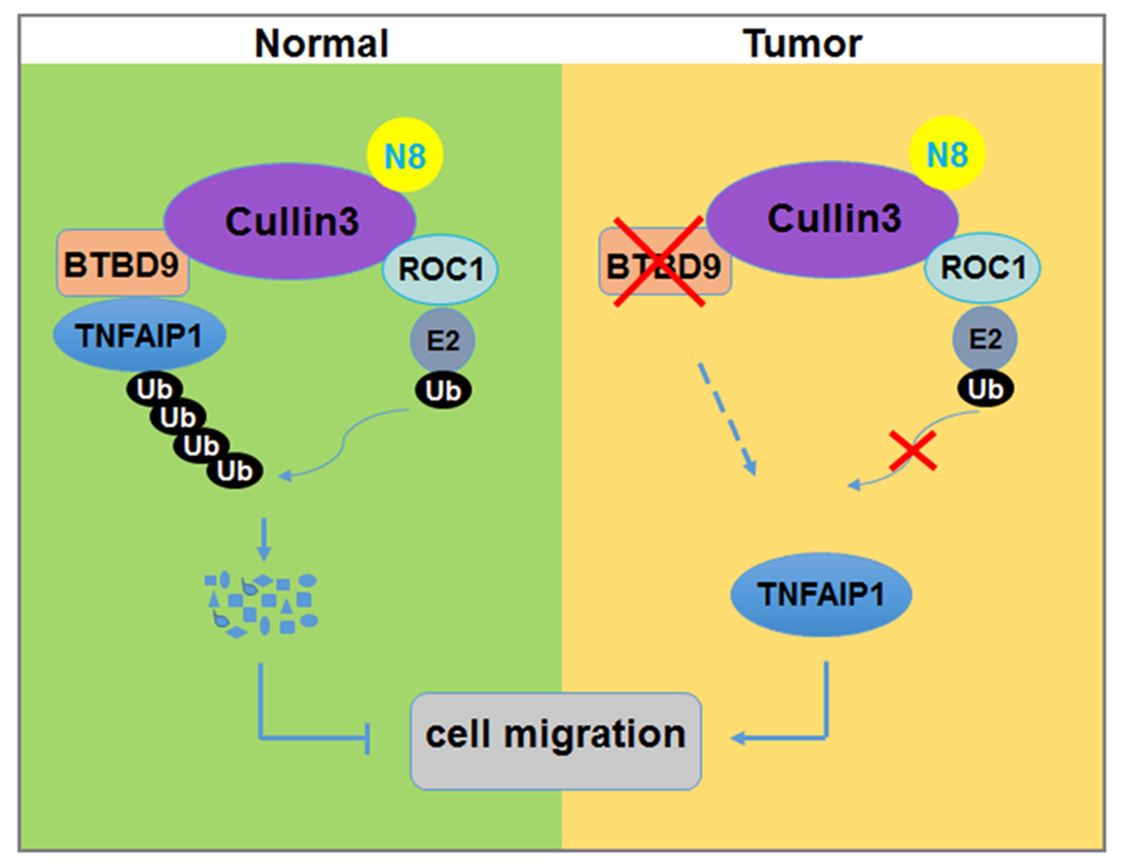 CRL3BTBD9调控肺癌内TNFAIP1降解示意图