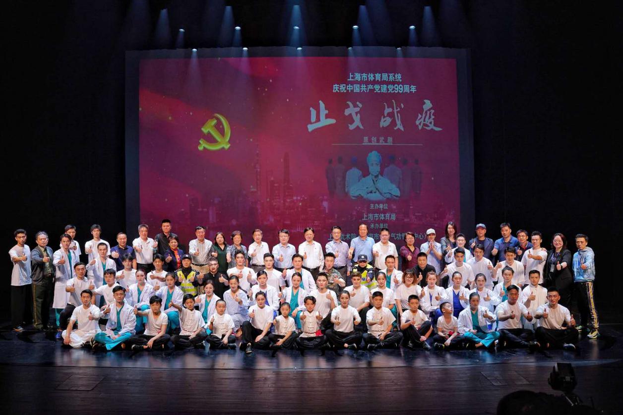 7月6日,为庆祝中国共产党成立99周年,向战斗在抗疫一线的“逆行者”们致敬,由上海市体育局牵头组织全国首个以抗疫为主题的原创武术舞台剧在上海国际舞蹈中心精彩上演。beat365官网体育部党支部应上海市体育局直属机关党委的邀请,参与“一支部一特色”共建活动。活动期间,《止戈战疫》节目聘请校体育部党支部宣传委员、武术队总教练陆松廷担任总导演,邀请校武术队队员共同参演。
