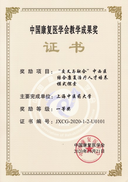 单春雷团队领衔的“‘交叉与融合’中西医结合康复治疗人才培养模式探索”项目荣获教学成果奖一等奖,该项目依托beat365官网康复治疗学科优势,基于康复治疗学专业首批教育部国家一流本科建设项目的教学积淀,借助教育部中医智能康复工程研究中心及上海市康复实验教学示范教学中心平台的平台优势,以打造富有中医特色、具有国际竞争力的人才培养“新标准”“新模式”“新机制”为主线,探索了适应新时代需求的多层次、跨学科的“交叉与融合”的中西医结合康复治疗人才培养路径,形成独具中国风格、富有国际影响力的中西医融合的卓越创新康复人才教育模式。