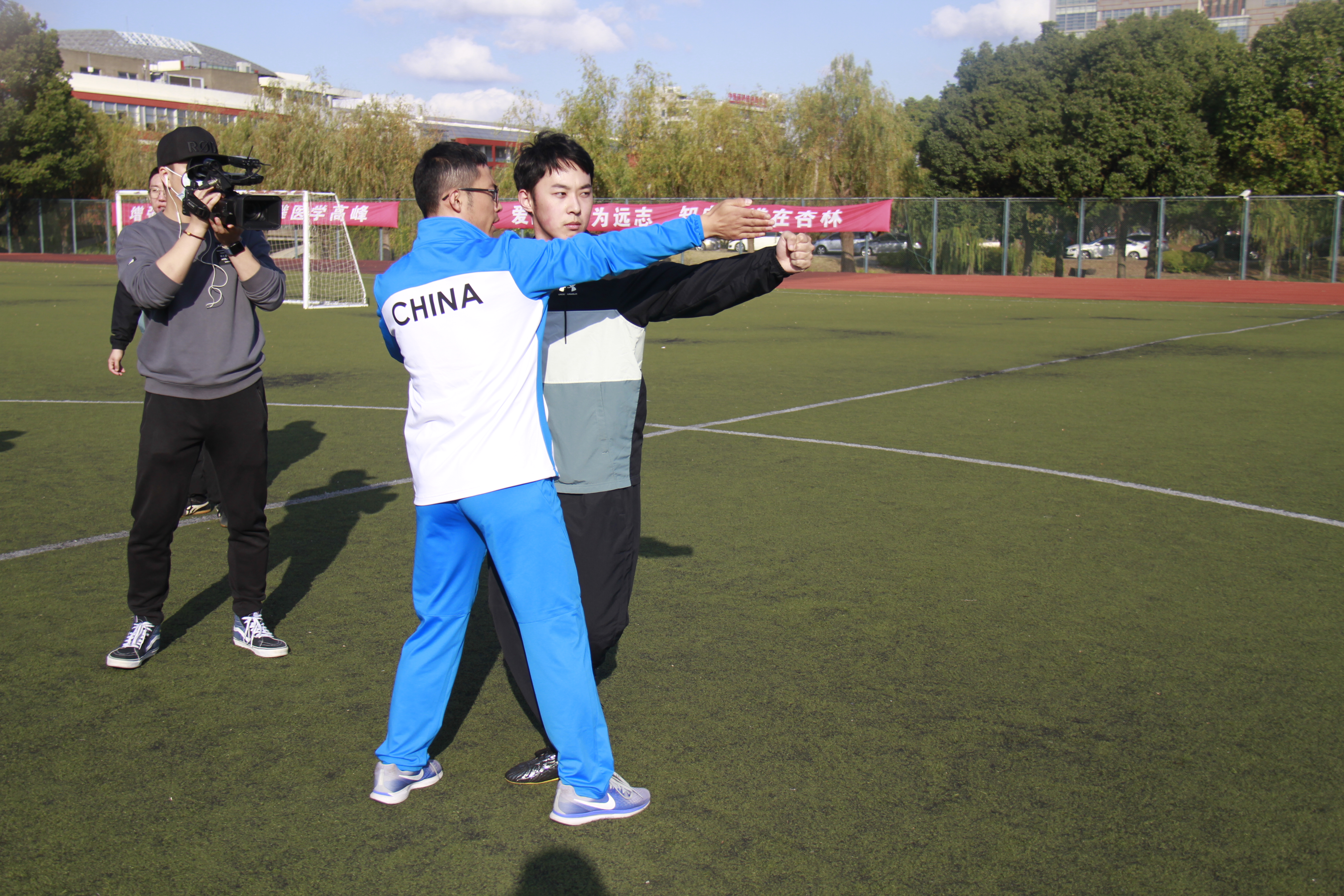 11月12日,上海教育电视台摄影组专程前来beat365官网拍摄武术拳操教学情况,录制在轻松欢快的教学氛围中圆满完成,充分展现beat365官网青年教师严谨认真的授课风采以及杏林学子奋发上进的“精、气、神”。