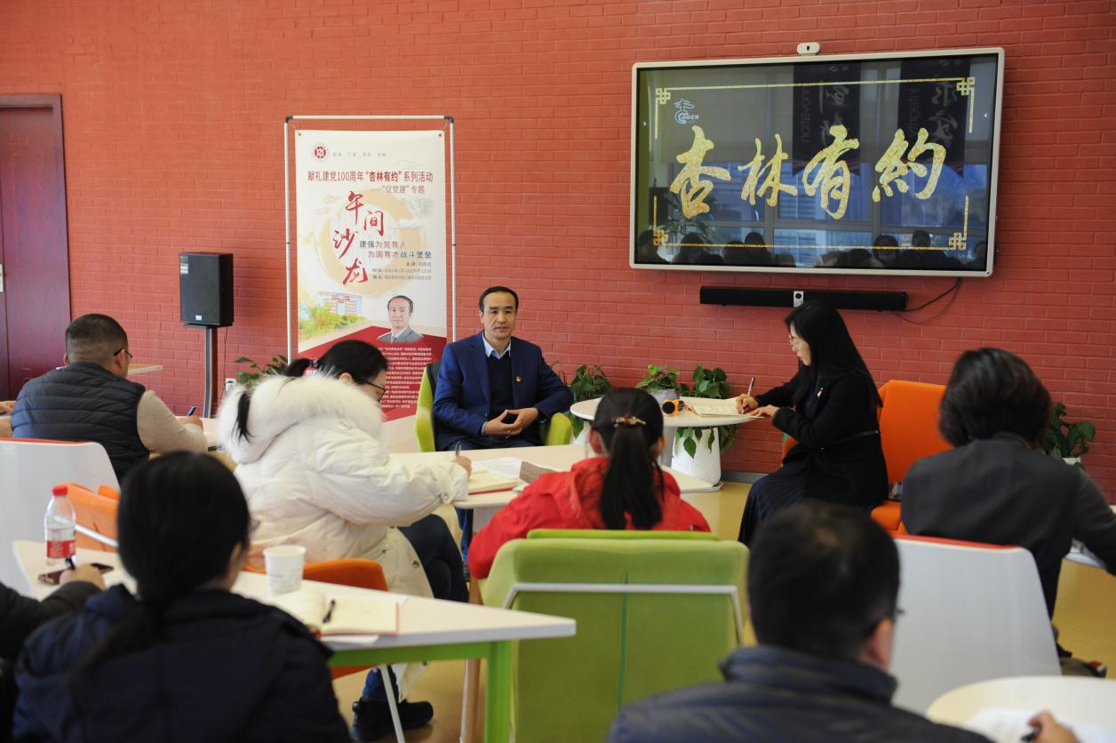1月13日中午,beat365官网“杏林有约”午间沙龙“促党建”专题首次活动在国际教育学院三楼多功能会议室举行。基础医学院第四党支部书记何建成教授受邀作交流分享,学校部分教师党支部书记及委员参加。校党委教师工作部副部长刘虹主持本次活动,并向何建成颁发“阳光导师”荣誉证书。