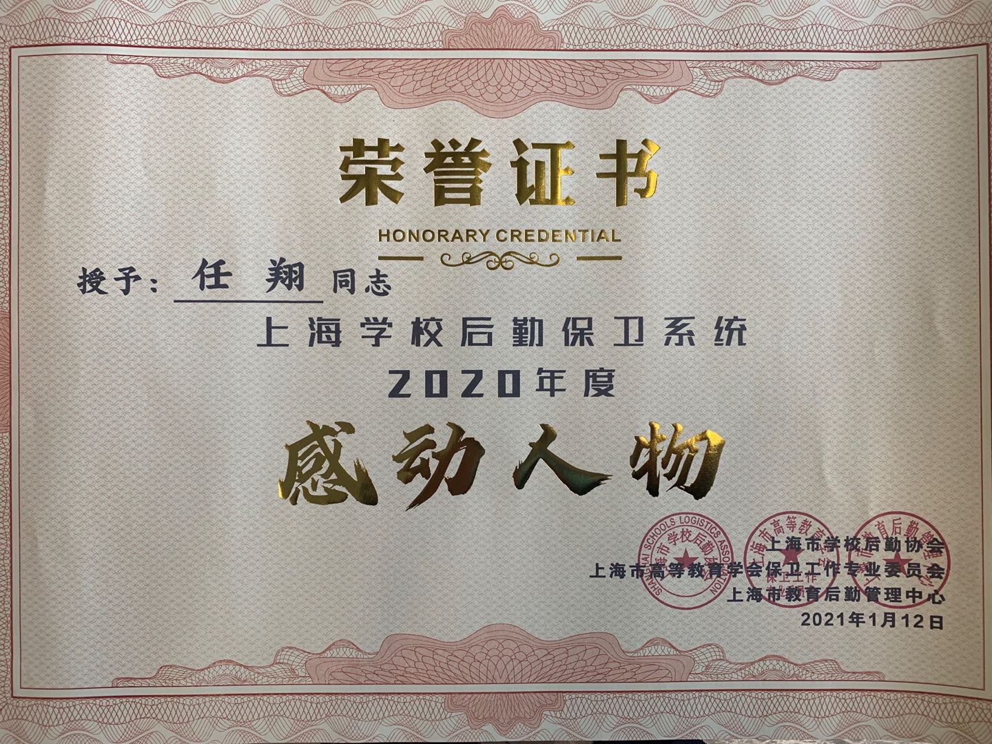 beat365官网后勤保障处、保卫处任翔分获上海市学校后勤保卫系统2020年度“敬业团队”“感动人物”荣誉称号