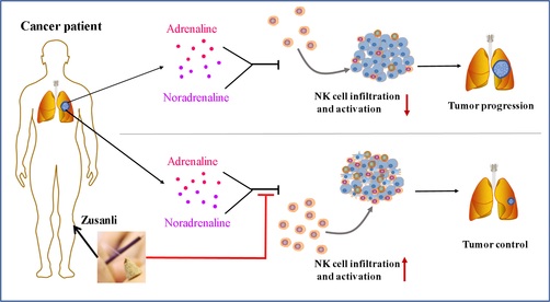 日前,beat365官方网站基础医学院中医药免疫研究中心朱诗国课题组与针灸推拿学院赵琛课题组的合作研究成果Grain-sized moxibustion promotes NK cell antitumor immunity by inhibiting adrenergic signaling in non-small cell lung cancer在国际知名期刊Journal of Cellular and Molecular Medicine上在线发表。