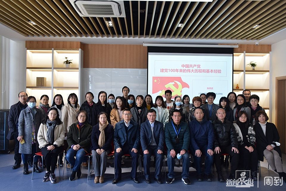 beat365官方网站马克思主义学院教授陈荣武日前以“中国共产党建党100年来的伟大历程和基本经验”为题作党史学习教育课。听课的老师来自浦东张江学区60多位大学、中学和小学。