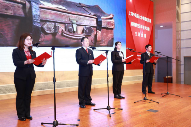 为让党史学习教育融入生动实践,共建双方还创排了“致敬峥嵘岁月,唱响红色赞歌”主题党课。快板书《赤胆忠心》和评弹《云老三唱》用曲艺形式诠释了陈云同志对祖国和人民的赤胆忠心、英勇无畏的革命精神。学校终身教授方肇勤带领基础医学院中青年党员教师朗诵《这是真的吗?》,生动讲述沉淀在革命文物上的 “红色记忆”。
