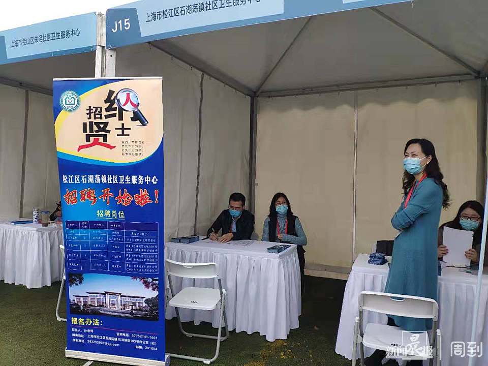 作为居民健康的“守门人”,基层医疗卫生机构人才缺口大。招聘会上,上海市卫生人才交流服务中心带领嘉定、青浦、松江、奉贤、南汇五个新城的社区卫生服务中心设摊招聘。