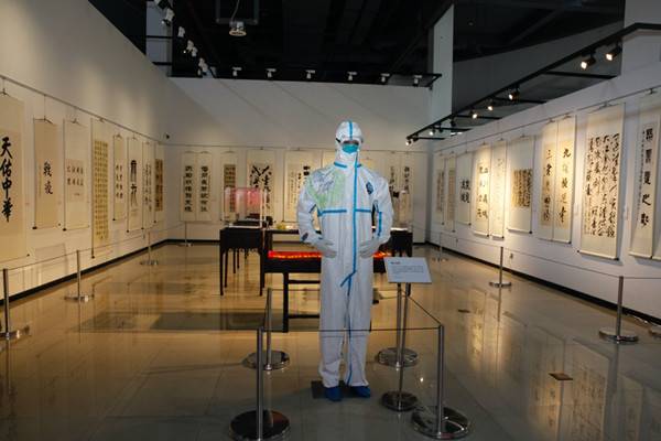 据介绍,本次展览运用书画作品和抗疫实物的跨界联合展陈方式,体现抗疫医务人员和书法艺术家们身体力行弘扬伟大抗疫精神,搭建学校系统党史学习教育有效平台。