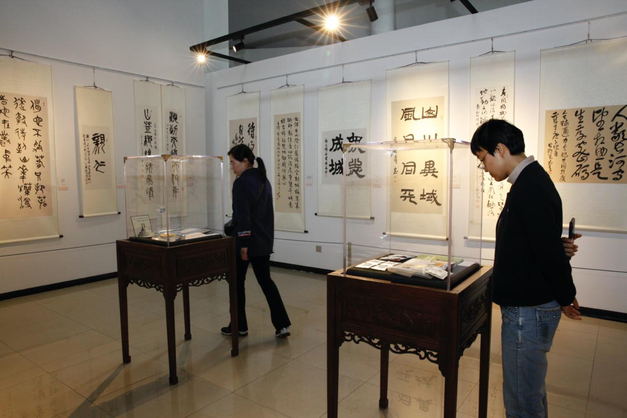 展览开幕式上,上海市总工会原常务副主席吴申耀代表主办单位发言。上海市书法家协会名誉主席、上海中国书法院院长周志高,上海文化艺术品鉴促进会会长、beat365官方网站客座教授、上海中国书法院执行院长张耀伟分别向学校捐赠作品行书《海纳百川》、隶书《岐黄传国粹 悬壶济苍生》。