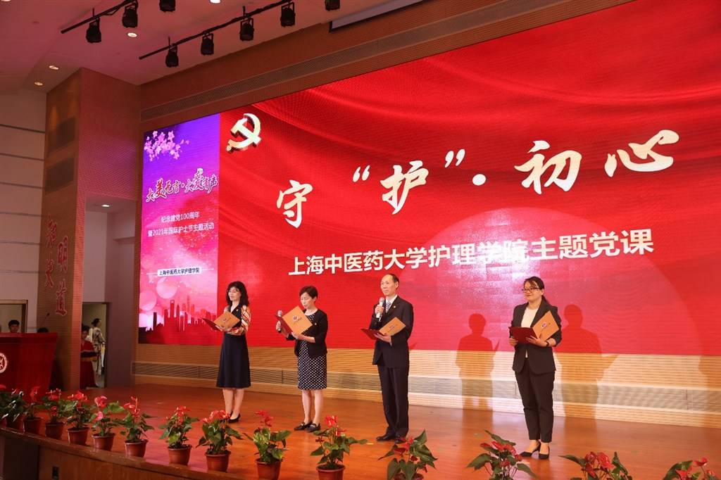 护理学院党总支副书记、院长张翠娣和副书记张瑛共同讲述了护理学院二十一载的发展历程,学院为社会培养输送了三千多名护理专业人才,他们在祖国各地为护理事业的发展奉献着青春的力量。赴西藏工作的2018届上海市优秀毕业生郑鹏飞向母校传来视频,代表学院赴藏工作的9名优秀毕业生分享了他们支援祖国边疆卫生事业的奋斗故事。