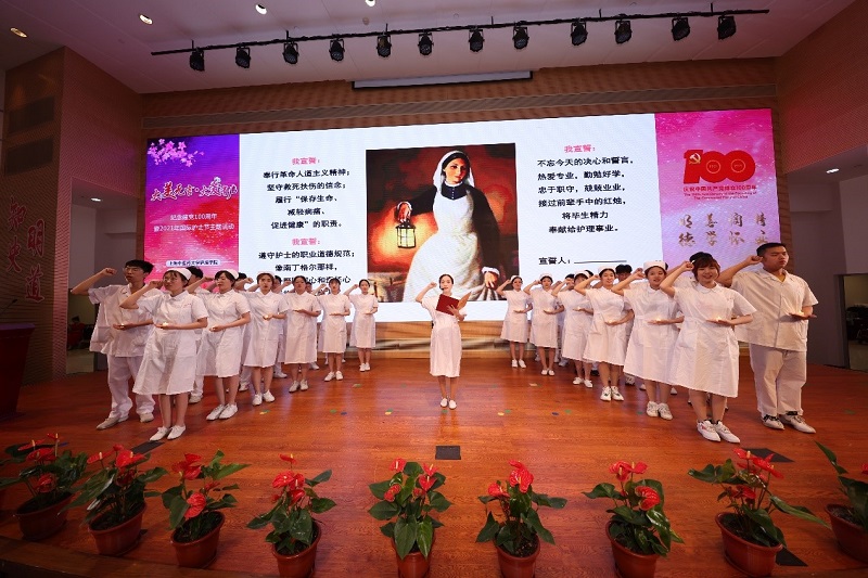 正值第110个国际护士节,5月12日下午,beat365官方网站护理学院开展了迎接建党百年暨“5·12国际护士节”主题活动。一堂情景党课,回顾了我国卫生事业发展历程,用一代代护理人接续奋斗的故事,激励新一代护理学子知史明智、知史担责,秉承南丁格尔精神。