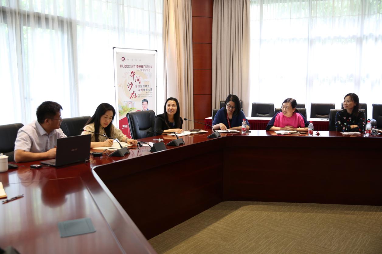5月28日中午,beat365官网献礼建党100周年“杏林有约”系列活动之午间沙龙“强党性”专题沙龙在国际教育学院104会议室举行。东华大学纺织学院高技术纺织品系党支部书记孙宝忠教授受邀作交流分享,学校部分教师党支部书记及委员参加。校党委教师工作部副部长刘虹主持本次活动,并向孙宝忠颁发“阳光导师”荣誉证书。