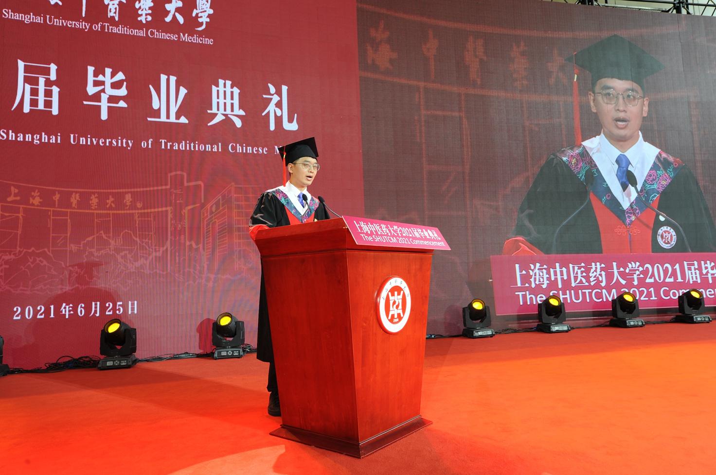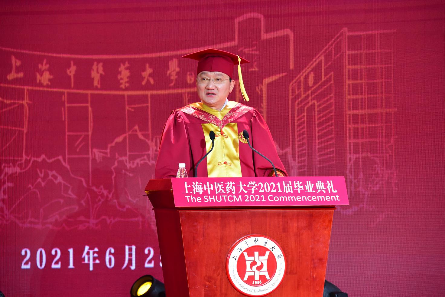 回首若干年前,你们与上中医相逢,郑重地举起右手许下救死扶伤的誓言。几年来,你们在“至精至微”的医道上探索,也渐渐体会了“见彼苦恼,若己有之”的真谛。今天,你们将从这里启航,去拥抱未来千百万种可能。在这个专属于你们的时刻,但愿母校可以为你们创造一个更广阔的造梦空间,也留下属于你们这一届的“独家记忆”。