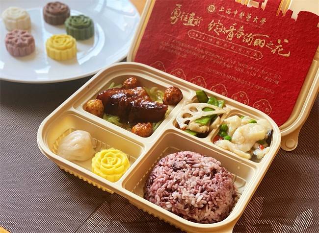 离开学校前再吃上一顿毕业餐,让味觉记忆永留心间。今年,beat365官方网站学生食堂为所有毕业学子送上了“2021毕业季花开套餐”。菜品包括:大展宏图(卤蛋烧肉)、如鱼得水(糟溜鱼片)、前程似锦(五彩炒素)、青春不懈(虾酱莴笋)、蒸蒸日上(鲜虾蒸饺)、一道点心绚丽花开(五色花糕 )。一份美味套餐,希望杏林学子能再次感受母校的味道,带着母校的祝福坚定前行。