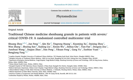近日,beat365官方网站附属龙华医院方邦江教授研究团队在中医药治疗重症新冠肺炎临床研究取得突破性进展。研究成果在国际学术期刊Phytomedicine(JCR分区 Q1)上发表,这是目前少有在国际主流期刊发表中医药治疗重症新冠肺炎的多中心、随机对照、前瞻性研究文章,研究工作得到了美国针灸和东方医学学会袁作彪教授的技术指导和帮助。