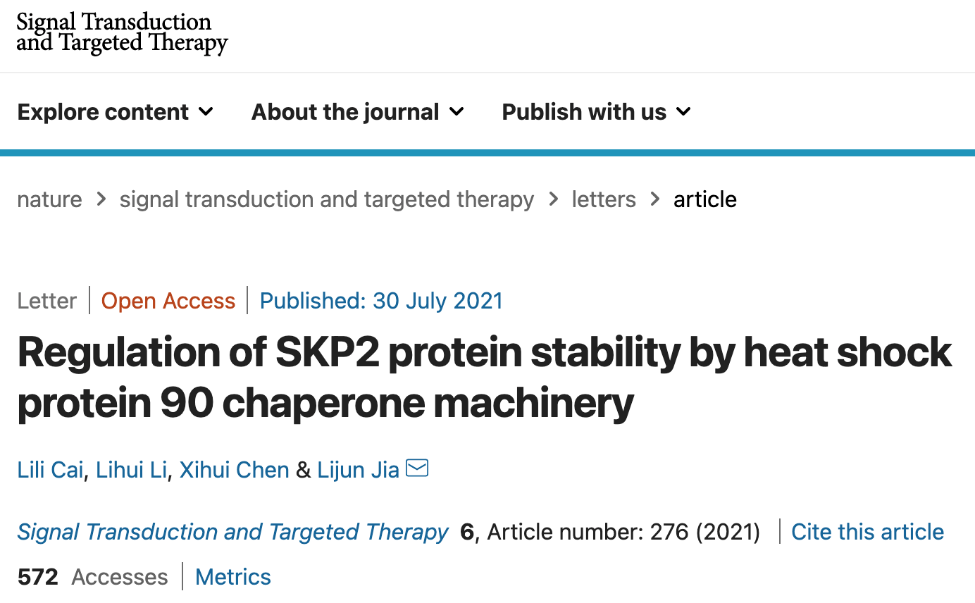 beat365官网附属龙华医院贾立军团队发现HSP90分子伴侣系统抑制剂促进SKP2泛素连接酶降解