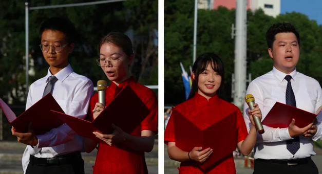 今年是中国共产党成立100周年,是中华人民共和国成立72周年。升旗仪式在中国人民解放军进行曲中拉开帷幕,国旗护卫队迈着整齐的步伐,目光炯炯。随着出旗令响,师生行注目礼,奏唱中华人民共和国国歌,五星红旗缓缓升起。