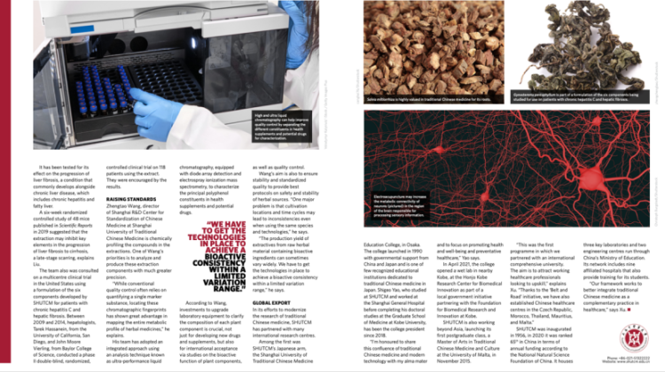 特刊介绍了刘平教授团队在肝纤维化的研究成果。团队正在研究一种基于传统中医中发现的植物源性成分煎剂对肝脏的影响。该提取物由丹参、桃仁、冬虫夏草、马尾松、五味子和绞股蓝制成。