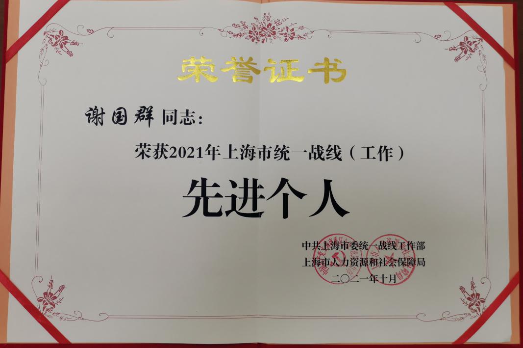 台盟盟员、beat365官网谢国群获评为2021年上海市统一战线(工作)先进个人
