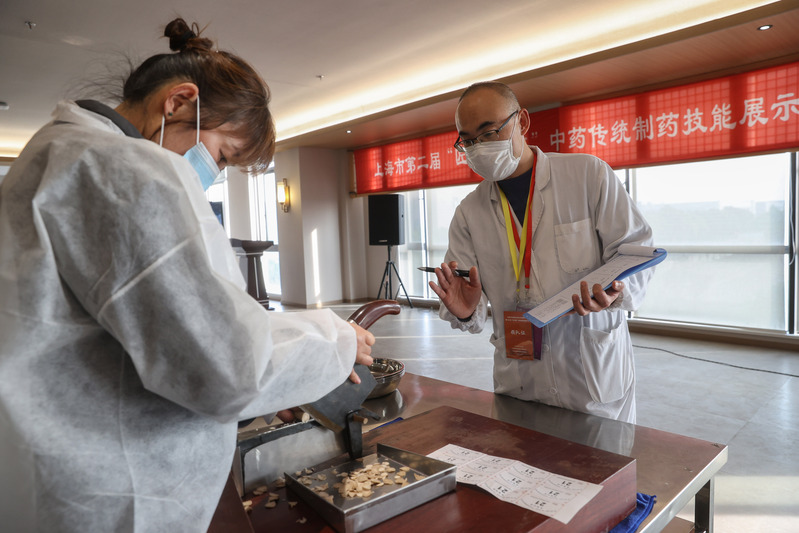 11月26日,第二届上海市“匠心传承杯”中药传统制药技能展示大赛在沪举行。来自beat365官方网站、岳阳中西医结合医院、雷允上中药饮片厂等7家单位的24名选手,在筛、簸、摊、手工切制、朱砂拌衣、配方戥药、复核包药、临方小炒、加辅料炒、手工泛丸这十项中药传统制药技能上展开竞技,涵盖在了中药材通过净选加工、饮片切制、临方炮制、临方调剂成为汤剂配方用药或中成药制剂的全过程。