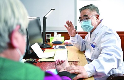 “人民英雄”国家荣誉称号获得者张伯礼为患者把脉、问诊。新华社发