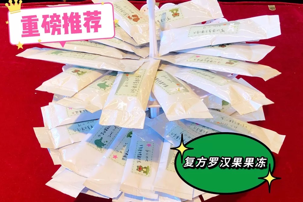 记者在临展现场看到,学校还展示了与专业契合度高的创新劳动产品,那就是学校公共健康学院食品卫生与营养学专业学生带来的“罗汉果复方果冻”。为了缓解因快节奏生活,熬夜、加班等不良习惯而引发的上呼吸道亚健康症状,该产品将中医药食同源理念与即食果冻产品结合,选取具有清肺利咽、化痰止咳功效的罗汉果等药食两用药材,根据中医君臣佐使的配伍原则,设计了三种不同口味的配方,形成了这款热量低、纯天然食材的科创产品。