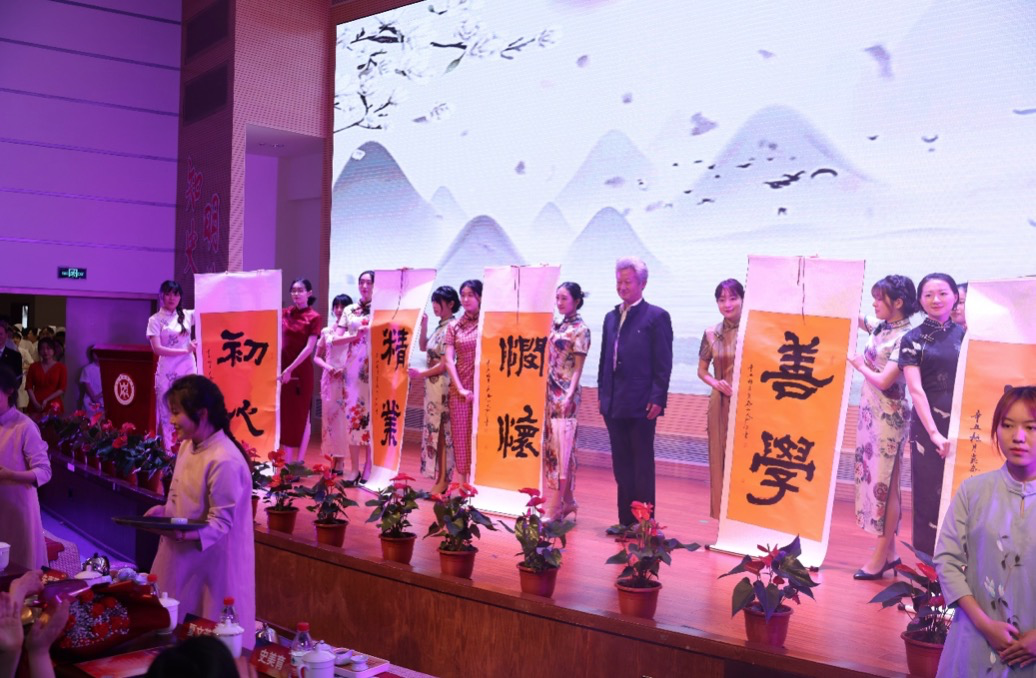 在“大美护理”美育展示环节,护理师生“秀”出了海派旗袍、茶艺、书法等中华优秀传统文化的育人成果。上海市医务工会书画协会会长张翔宇挥墨书写了“初心·使命”,护理学院院训“明德、善学、悯怀、精业”等作品,将真诚的祝福和希冀送给所有护理人。